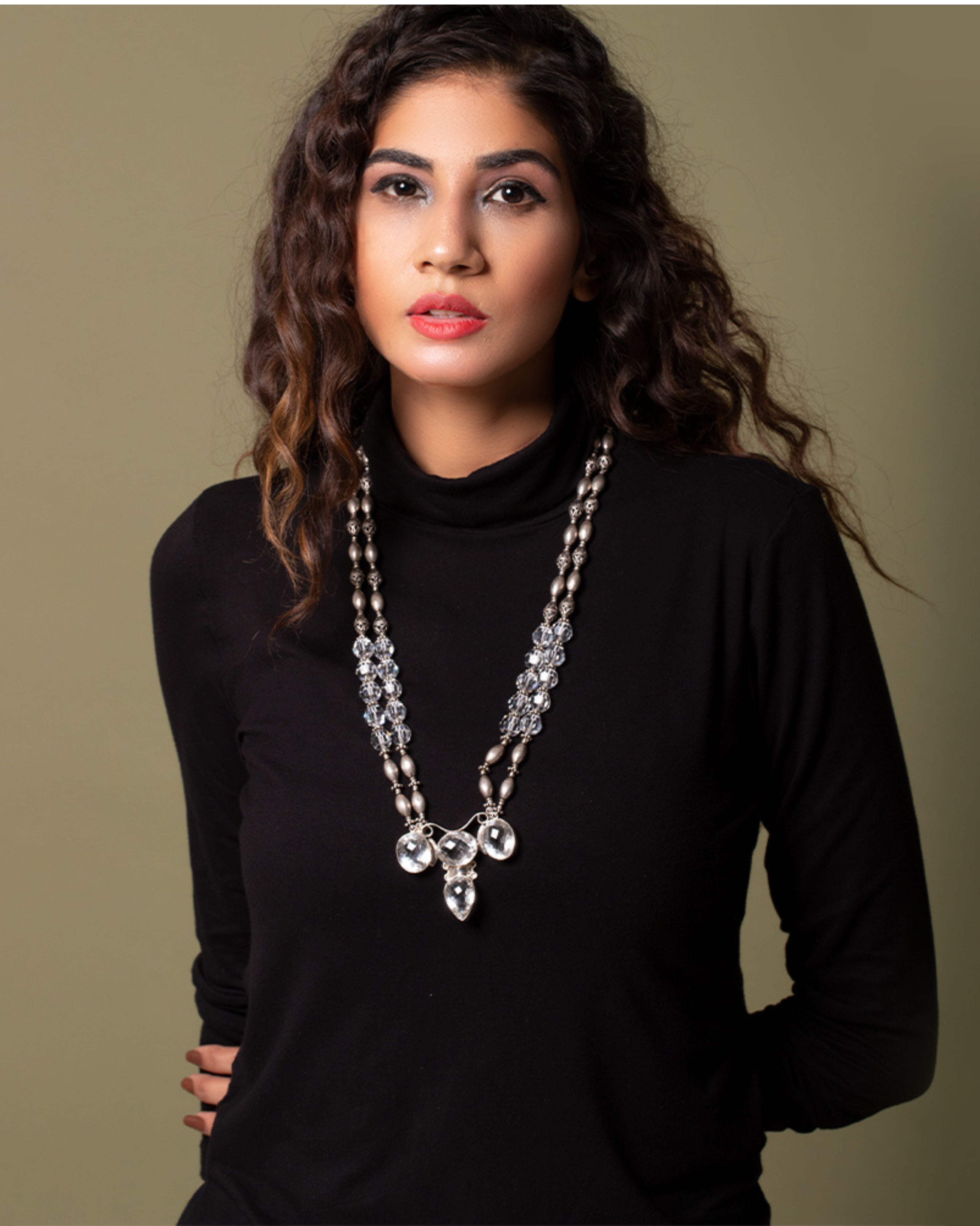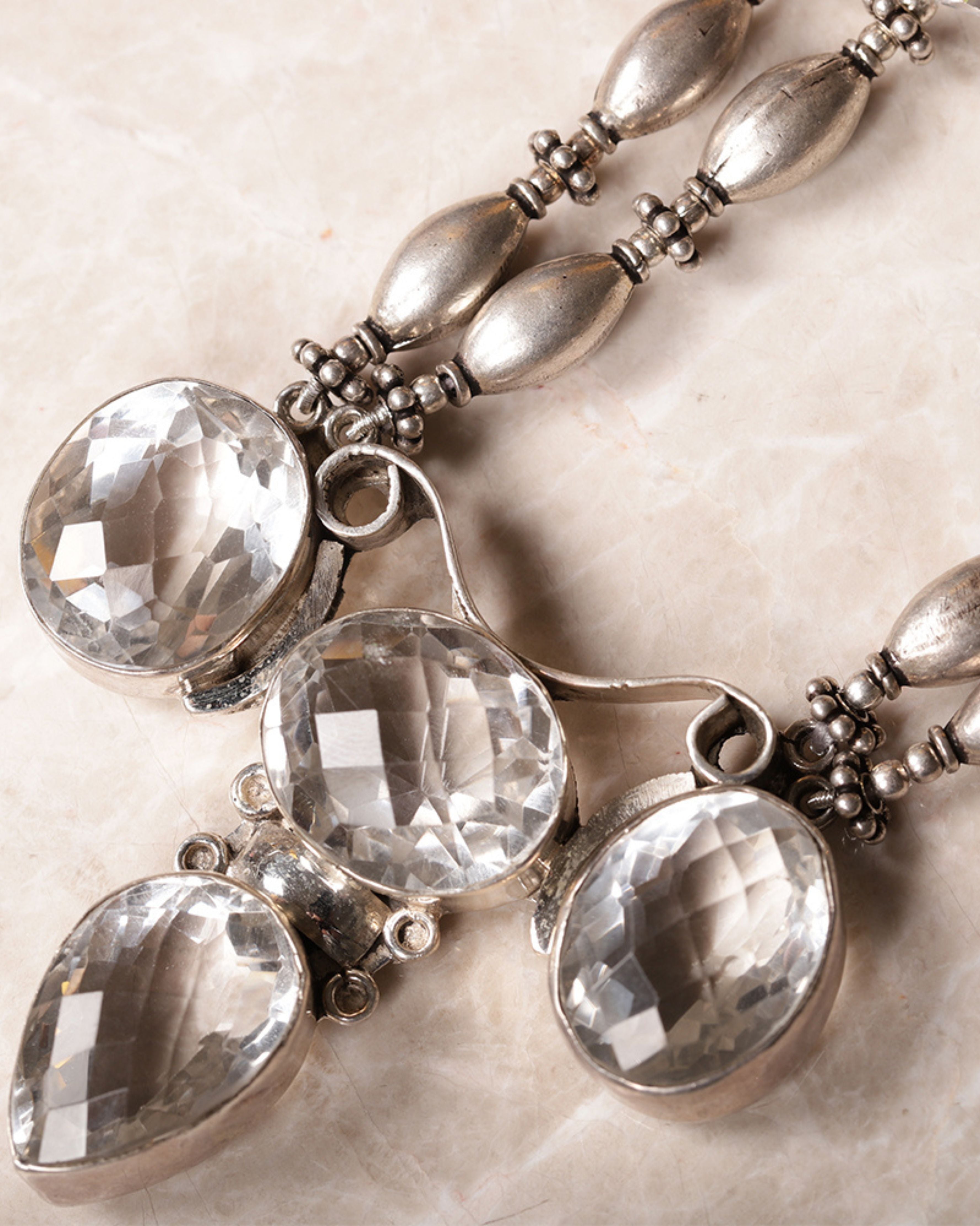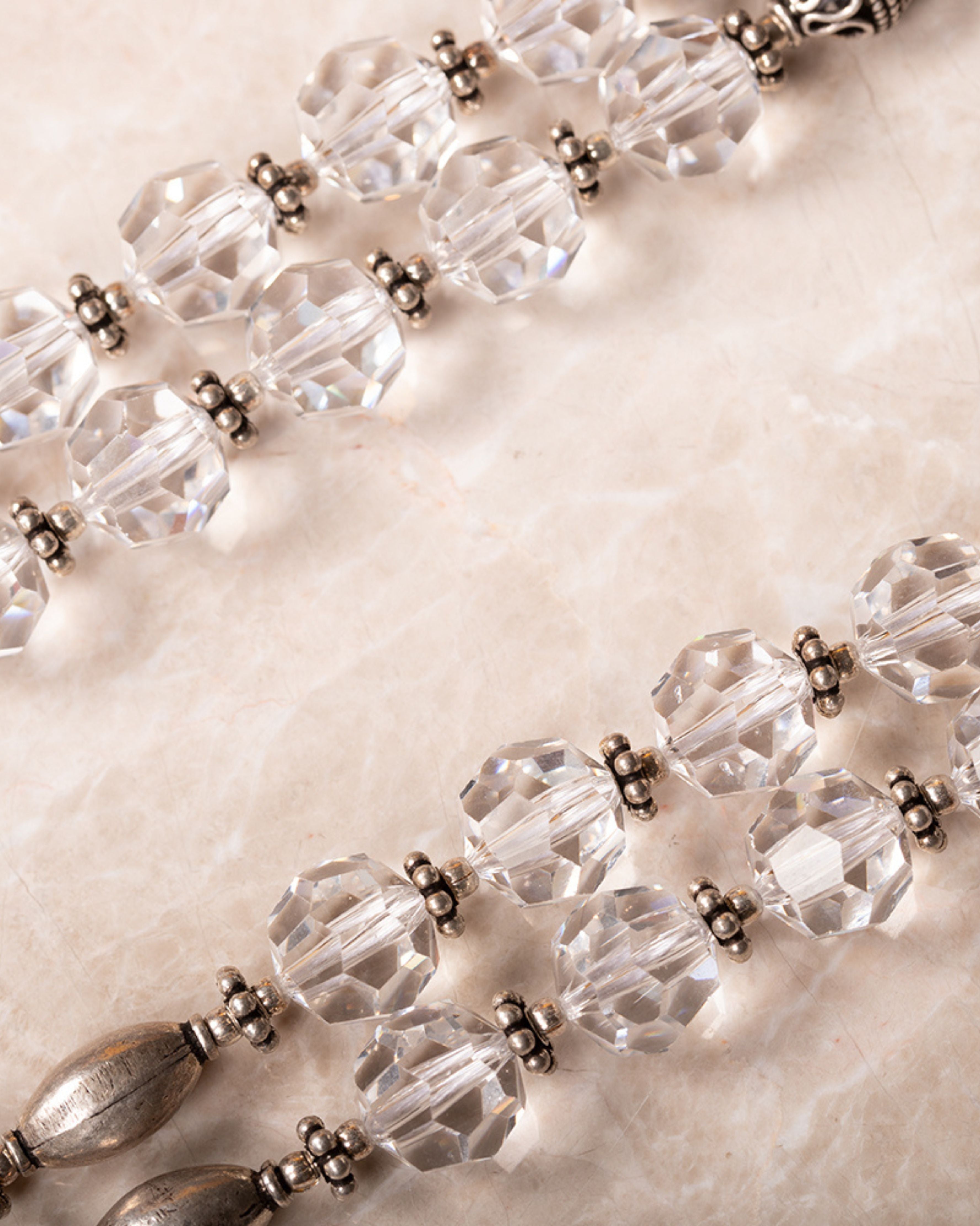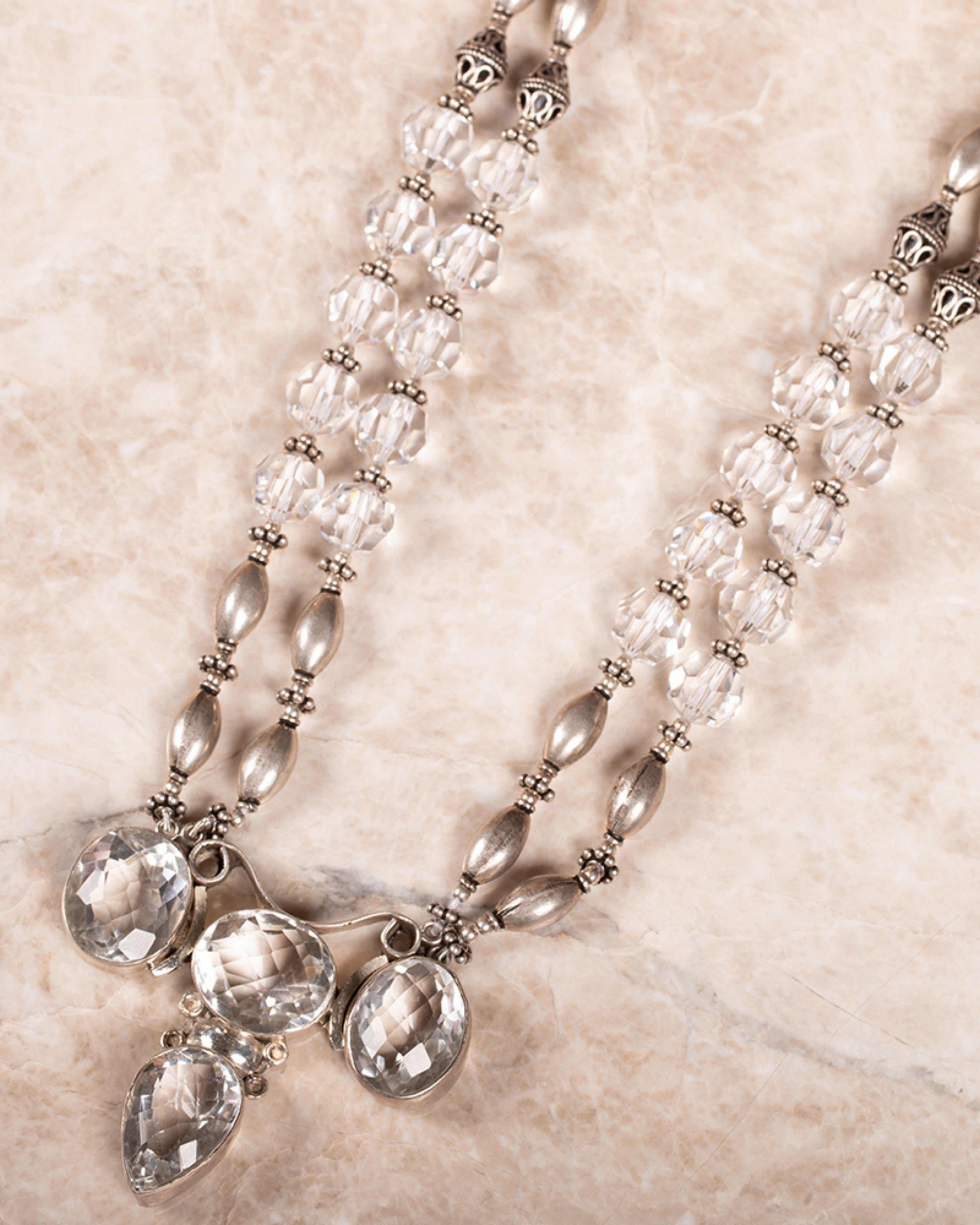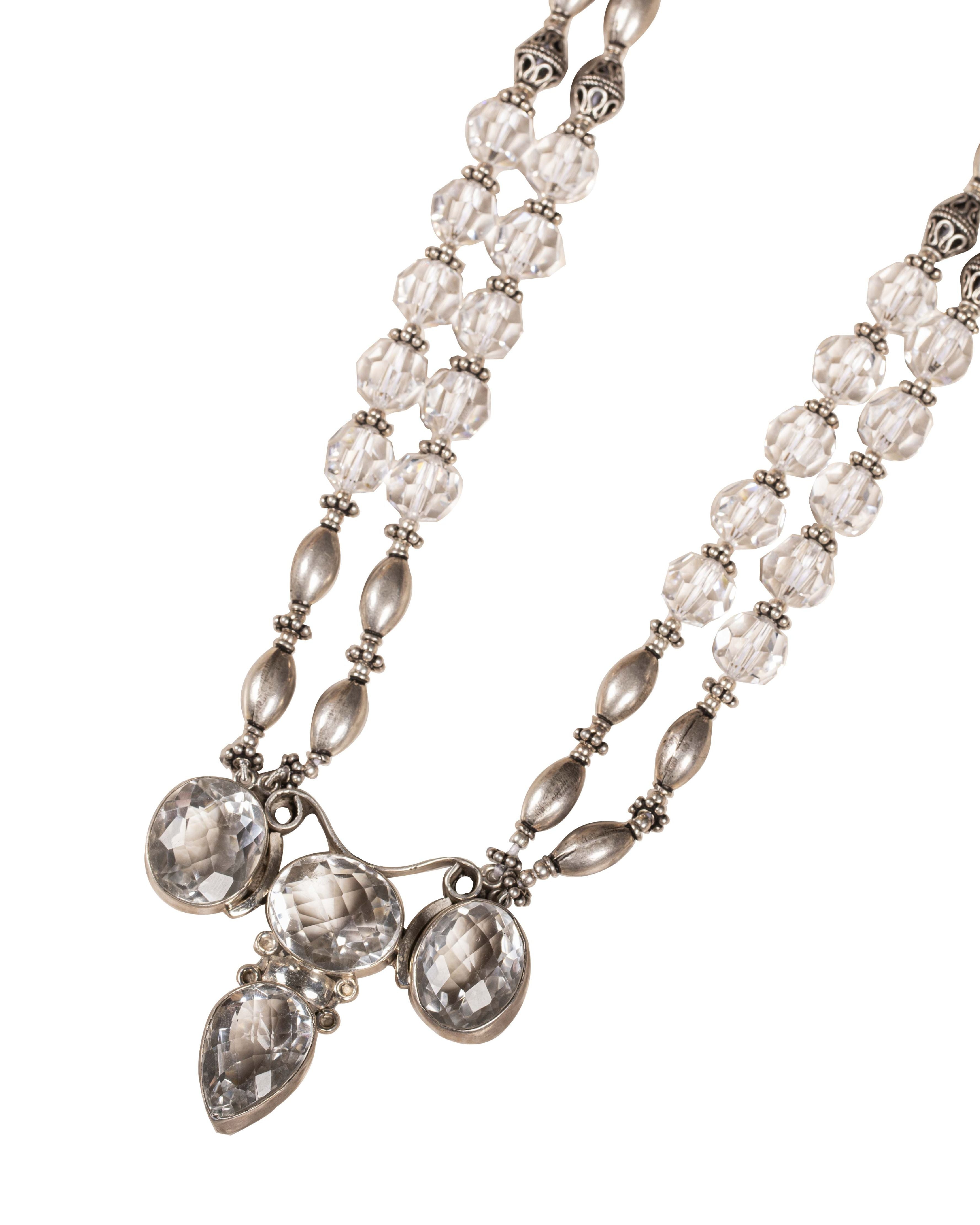 A royal exquisite necklace with clear crystals and silver beads with a bold pendant to enhance your looks.