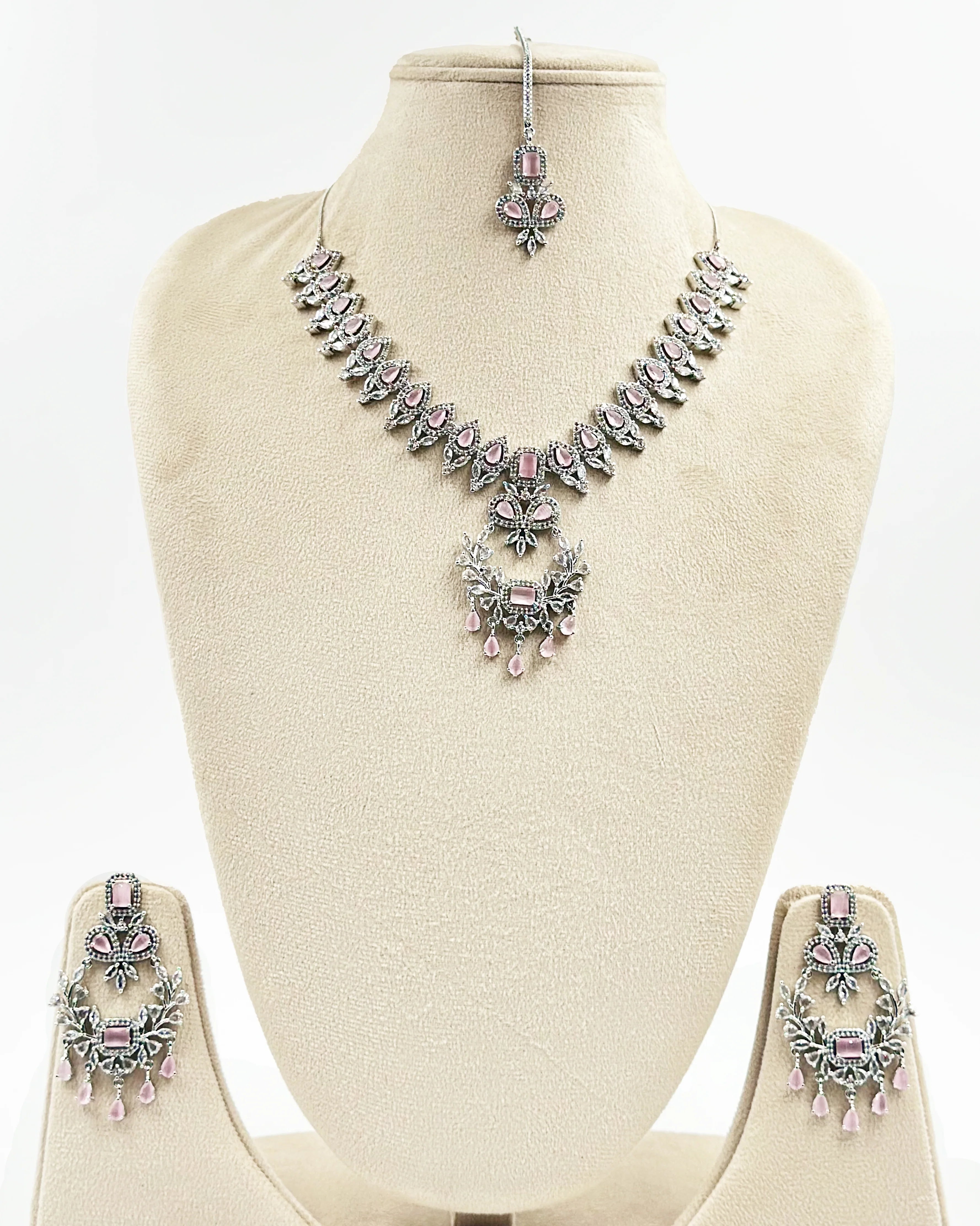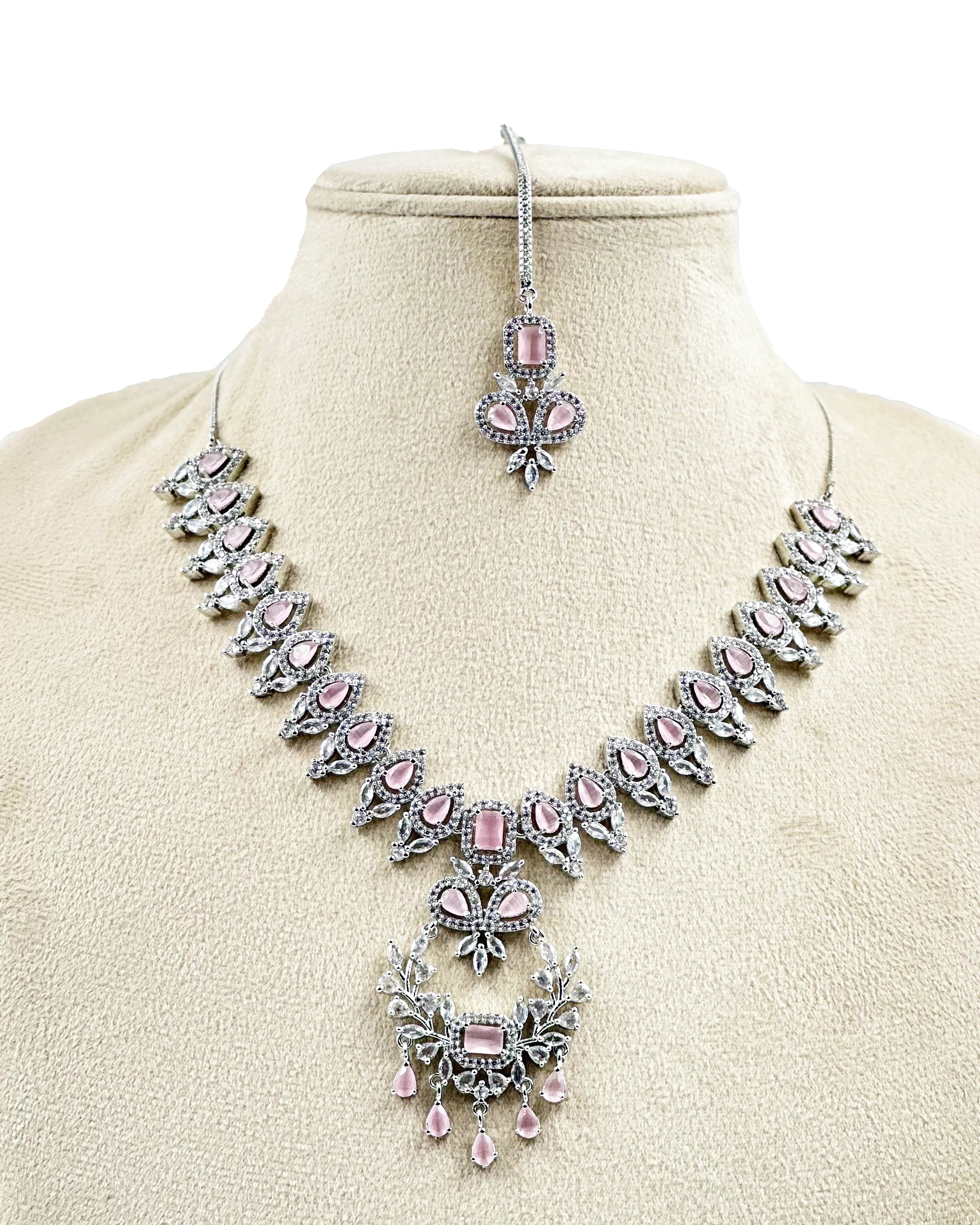 • Captivating Design: Light pink necklace crafted with exquisite cubic zirconia and pink stones.