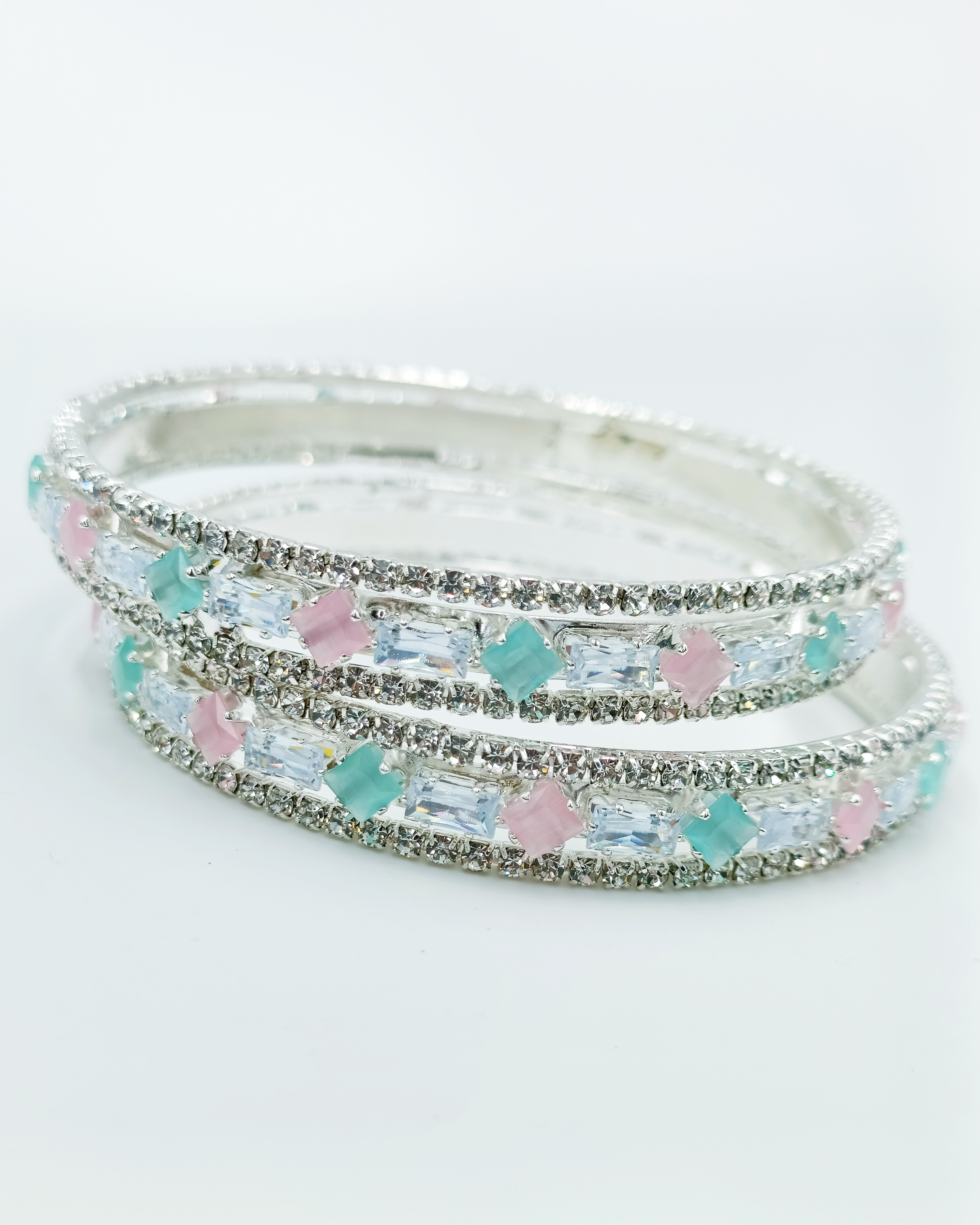 Crafted with exquisite pink and light green stones, these kadas offer a captivating blend of colors and textures.