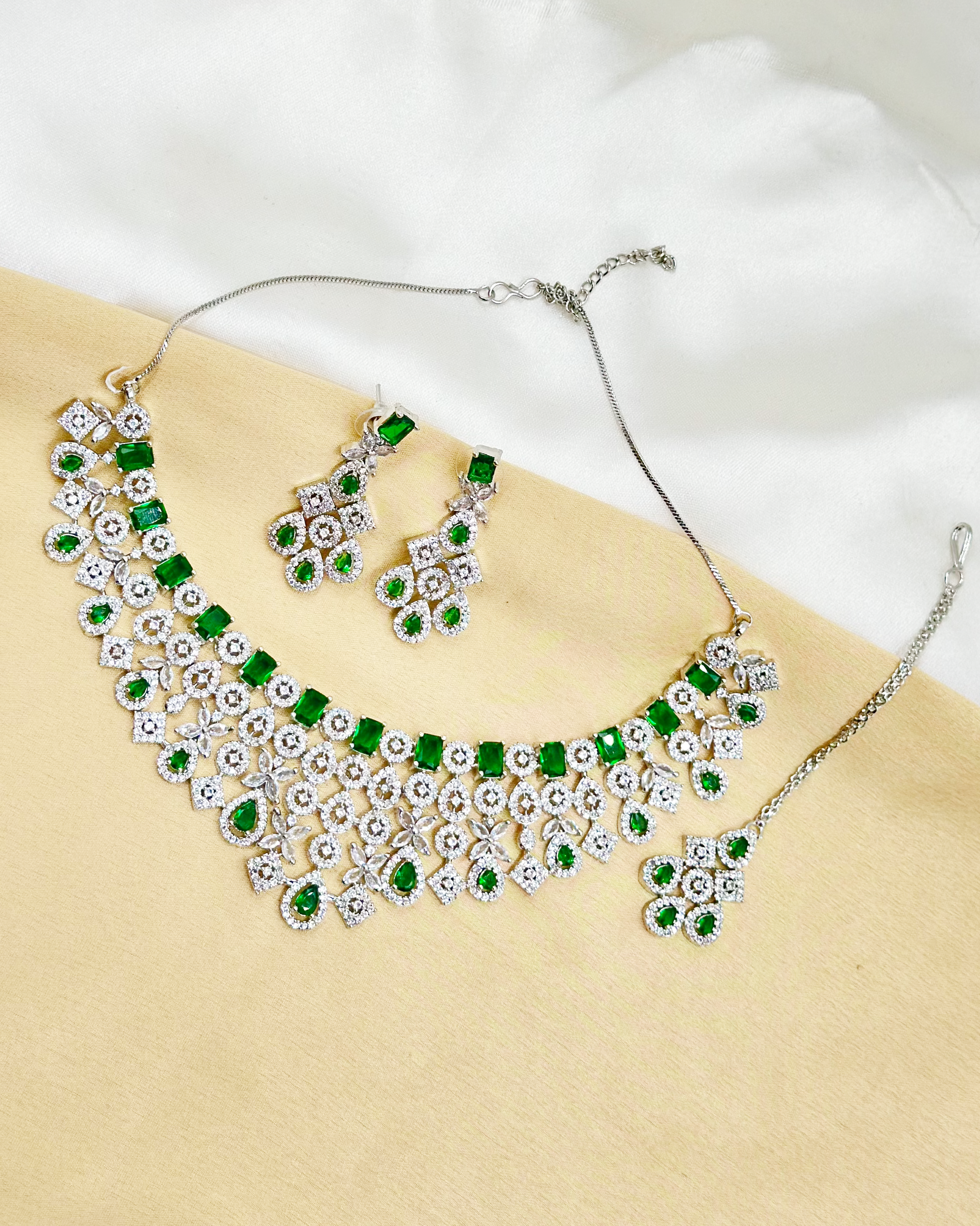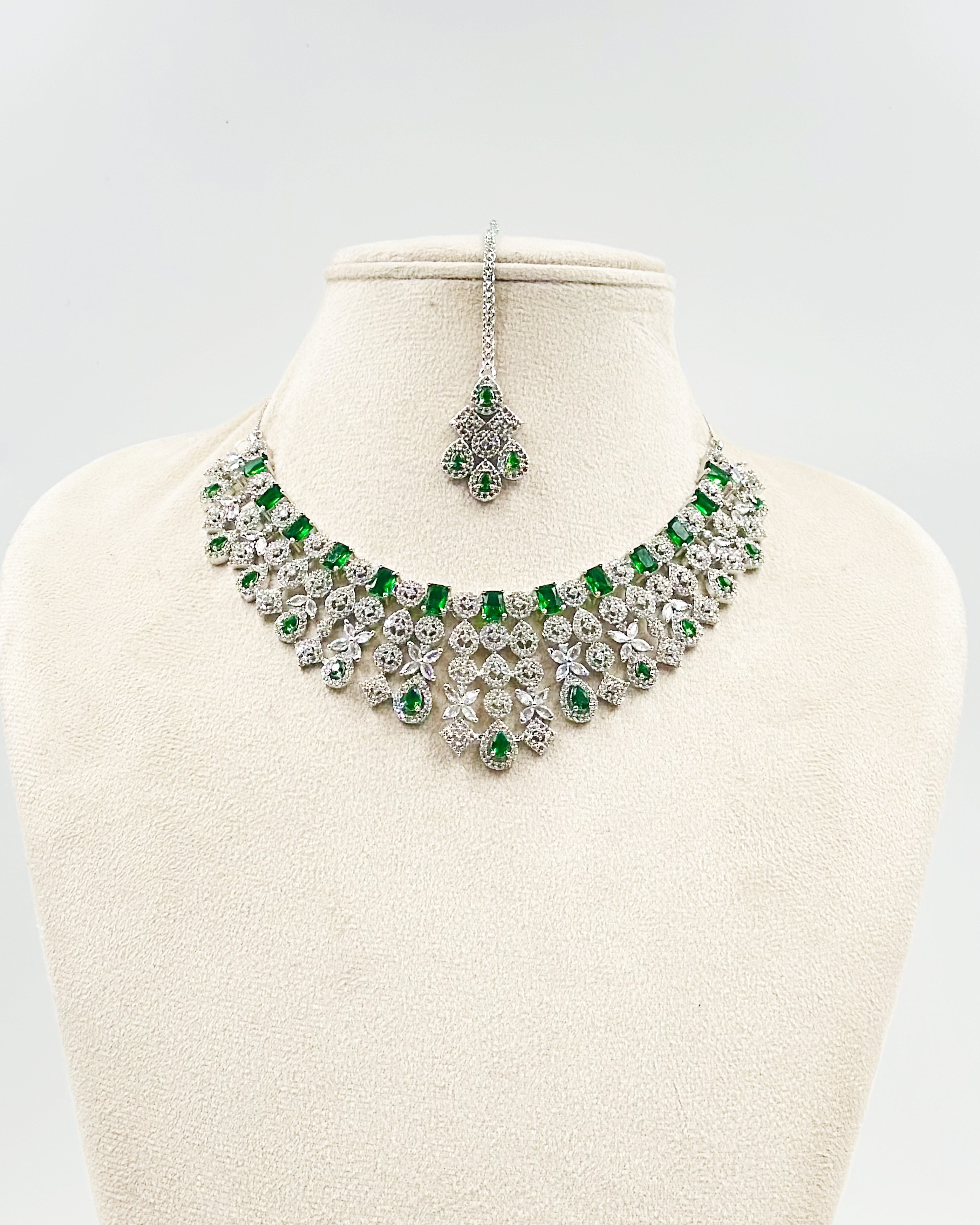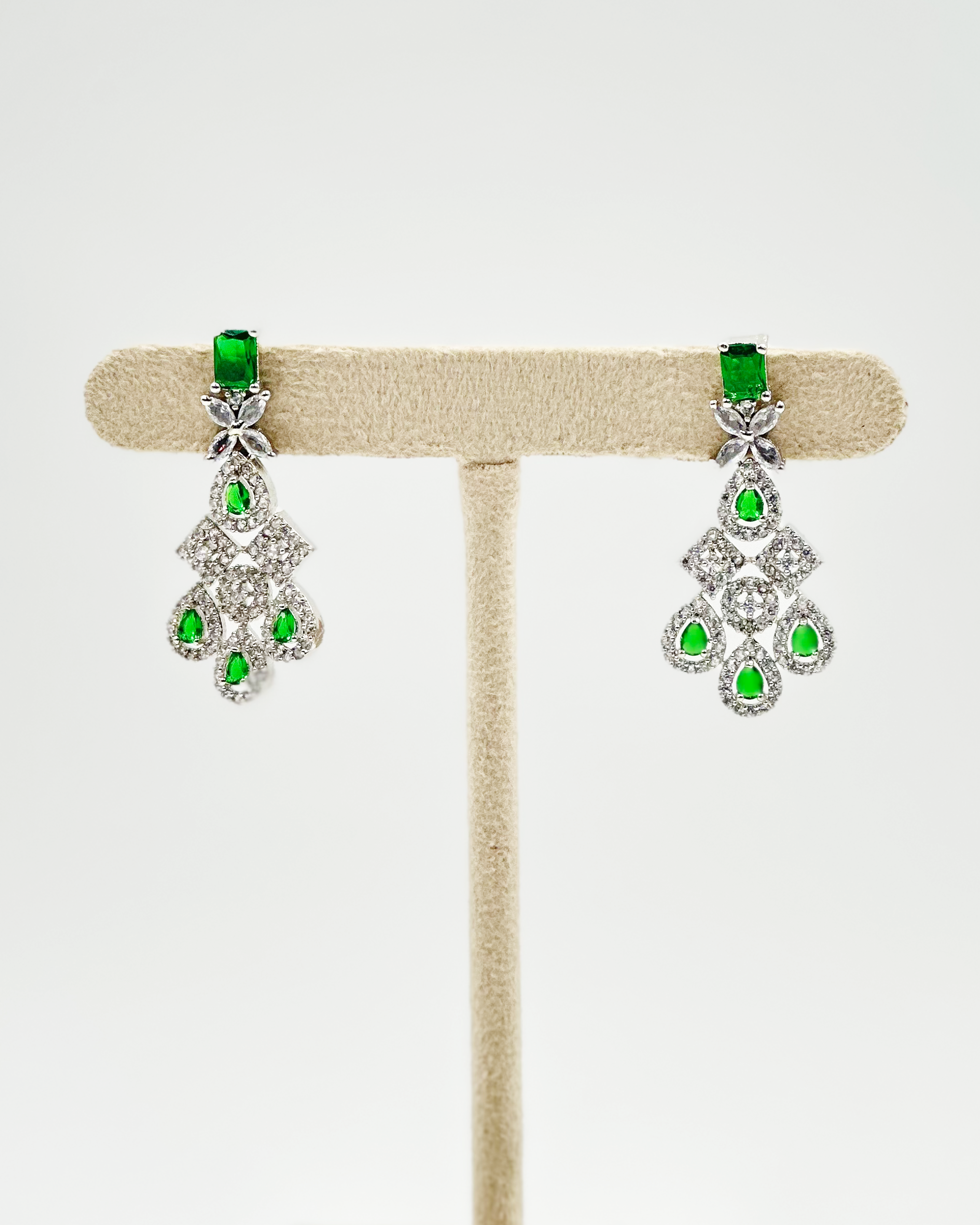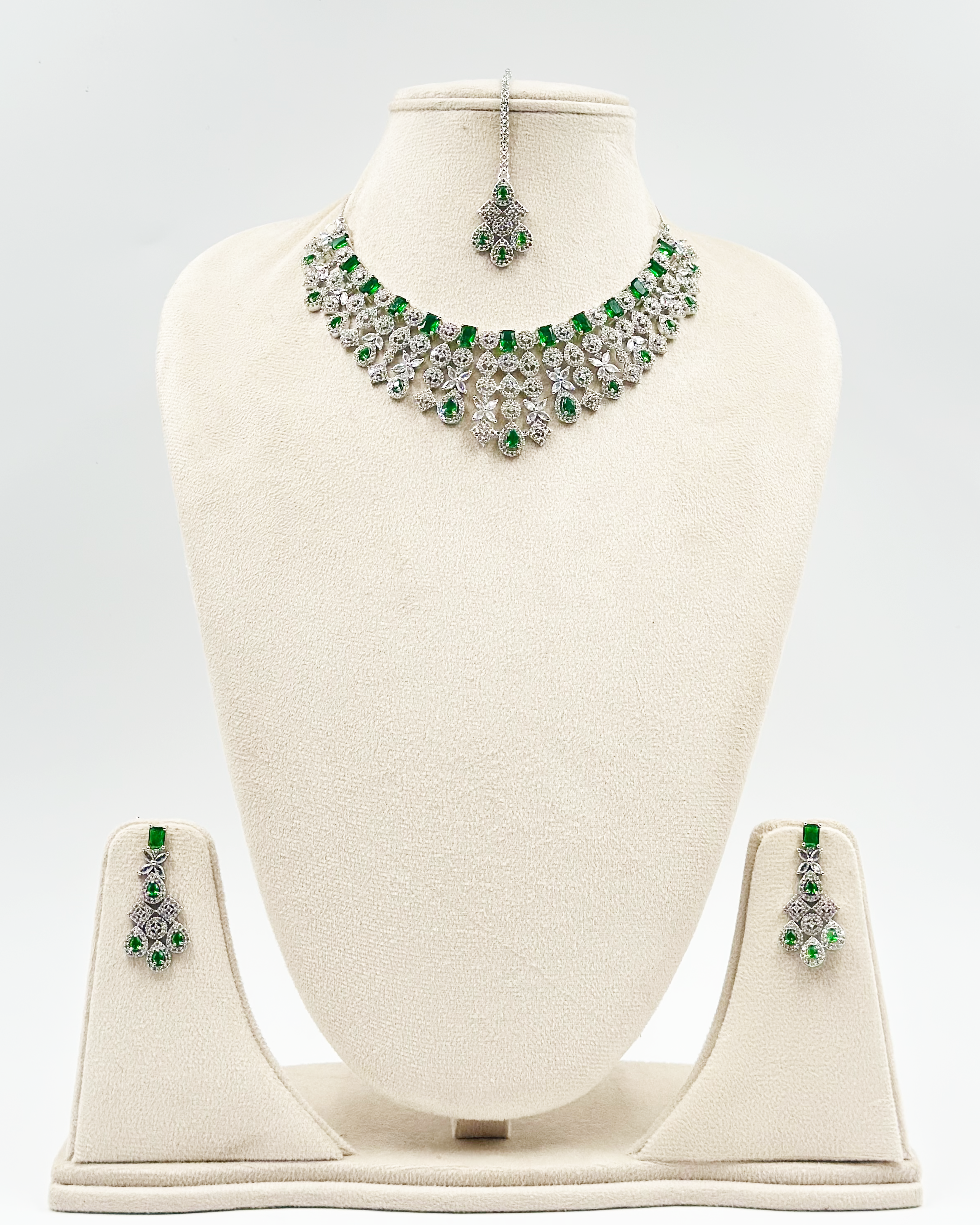 The timeless beauty of emerald-like stones combined with the brilliance of cubic zirconia creates a truly captivating piece.